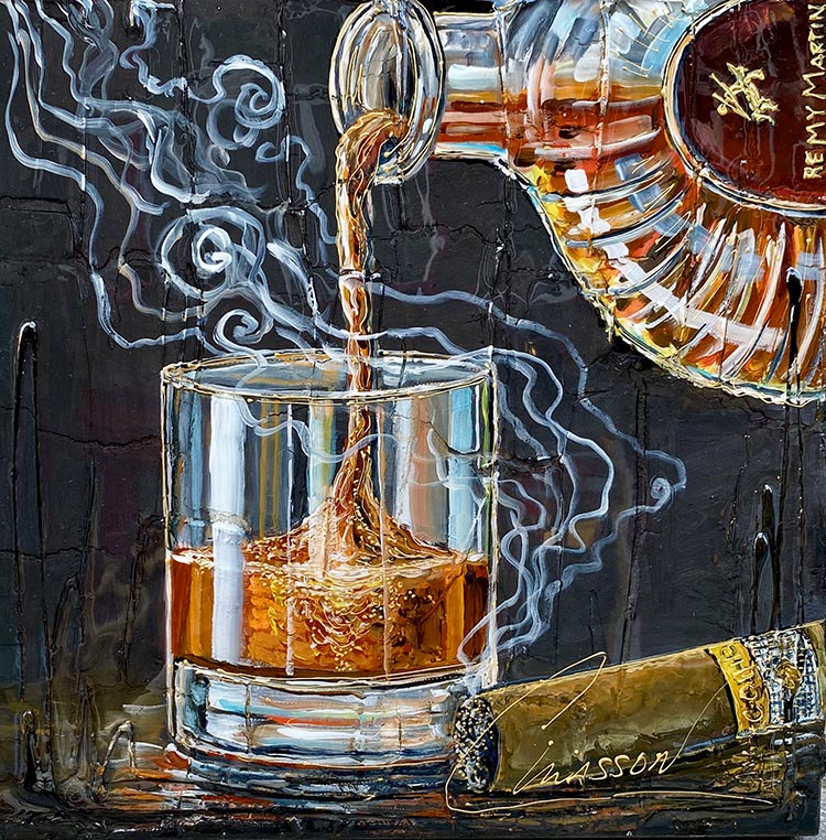 « Ici découvrons toute l’élégance harmonieuse du talent de l’artiste qui fait jaillir sa peinture sur ses toiles. Cela ne vous laissera pas insensible… »